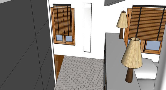 Les plans ainsi réalisés j'ai pu construire la structure en 3 D et intégrer le mobilier et surtout entièrement repenser la salle d'eau.